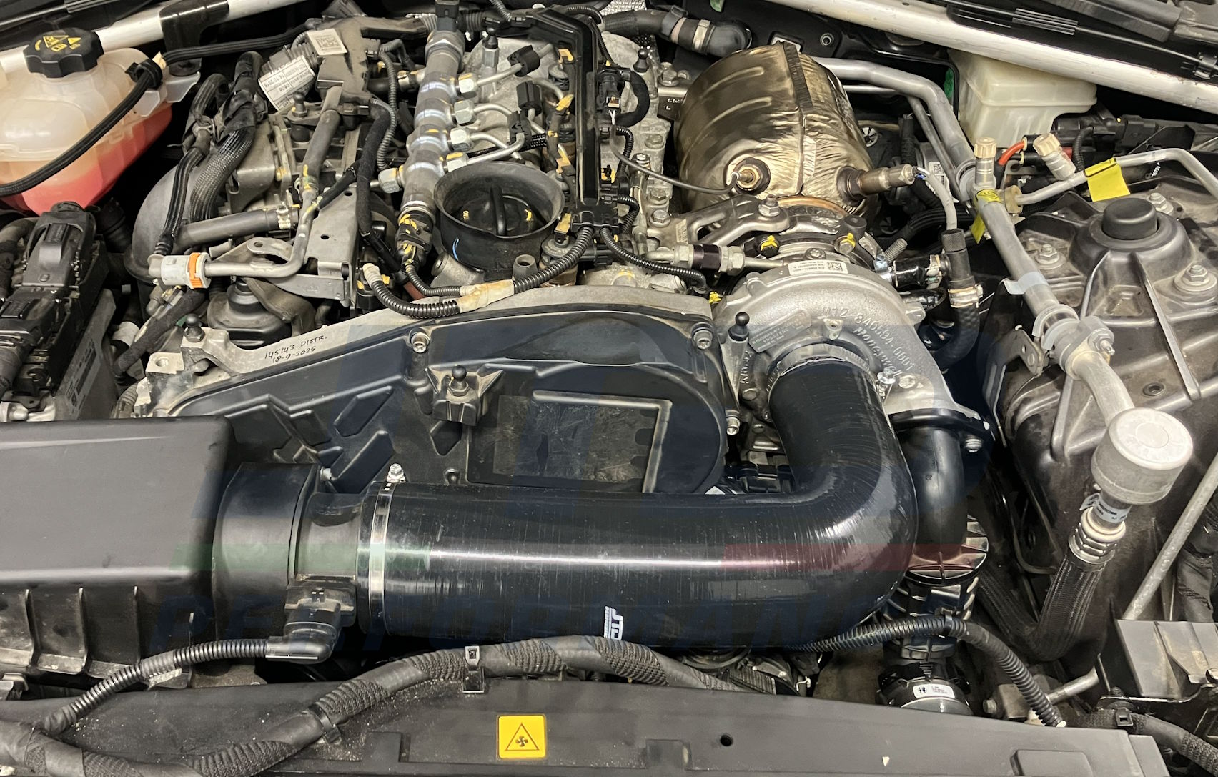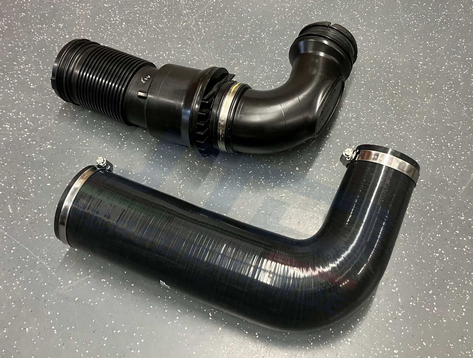 Inlaatslang opgebouwd uit hoogwaardig 5-laags siliconenrubber ter vervanging van de plastic inlaatpijp met demper. De standaard pijp kan na verloop van tijd lekkages vertonen, voornamelijk aan de turbozijde. Deze slang is een sterker en vooral mooier alternatief en heeft met de gladde binnenzijde de best mogelijke flow van luchtfilter naar turbo.